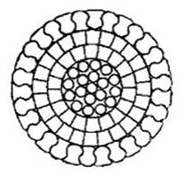 Формирование оптимальной структуры стали, рациональное проектирование маршрутов пластической деформации, моделирование процессов прокатки и волочения позволяет совершенствовать технологию изготовления, повышает механические и технологические свойства проволоки. Создание наружного слоя проволоки и изделий из нее заданного состава и геометрии позволяет повысить их служебные свойства. На рисунке показано поперечное сечение биметаллической проволоки с наружным слоем из нержавеющей стали и сердечником из углеродистой стали (а), стального каната закрытой конструкции (б) и пластически обжатого каната (в).
