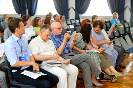 Как всегда на подобных встречах, так и сегодня с вступительным словом выступил проректор по учебной работе вуза И.Л. Гоник. Игорь Леонидович подчеркнул, что наступает самое горячее время – 3 августа уже совсем близко! А в 12 часов этого решающего дня будет завершен прием оригиналов документов для поступающих на программы бакалавриата и специалитета на бюджет для лиц, поступающих по общему конкурсу. «В 12 часов и одну секунду уже нельзя будет передать документы онлайн – не примут!» – отметил проректор.