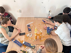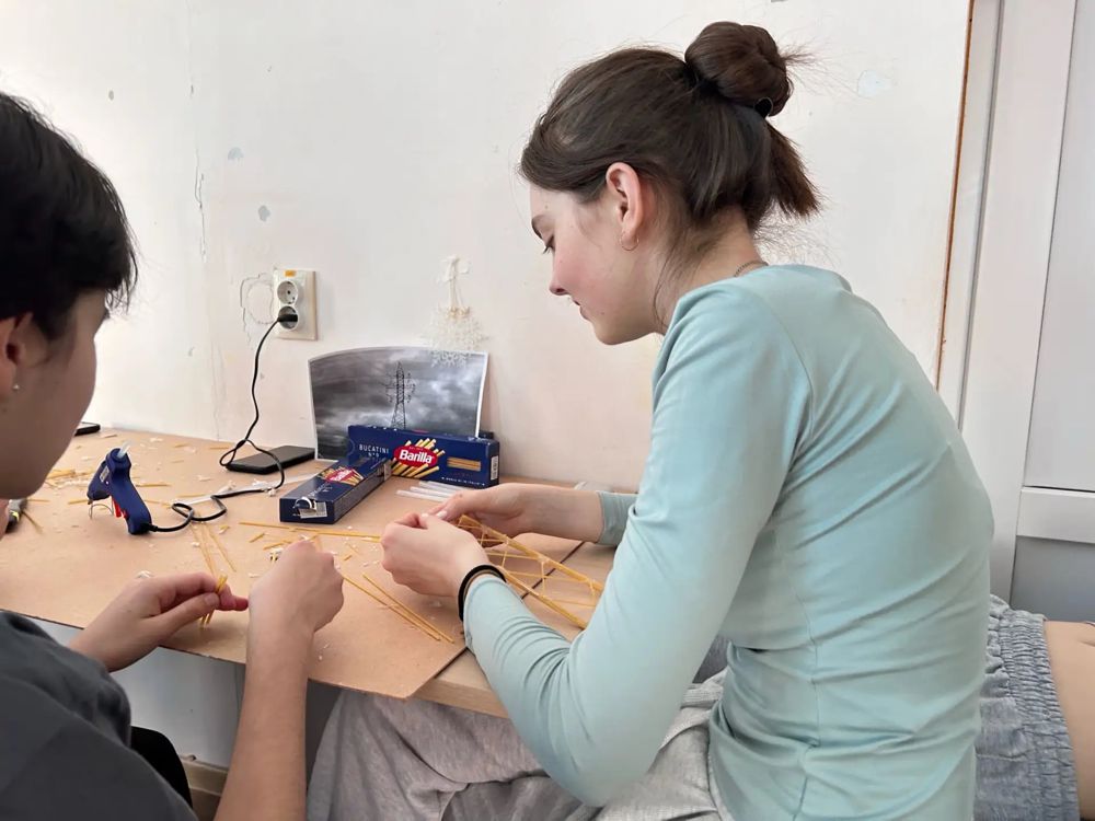 Наши юные архитекторы и строители, вооружившись клеевыми пистолетами, фантазией и килограммами макаронных изделий разных форм, превратили аудиторию в настоящую архитектурную мастерскую.