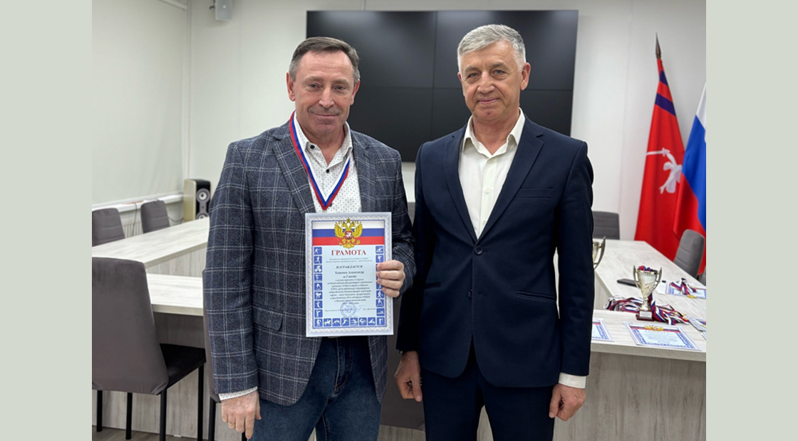 Председатель комитета по физической культуре и спорту Администрации городского округа – город Камышин Борис Дроботов вручил директору КТИ (филиала) ВолгГТУ, к.э.н., доценту кафедры «Экономические и гуманитарные науки», депутату Камышинской городской Думы Александру Хаценко грамоты и медали за I место в личном первенстве (15 ступень) и абсолютном первенстве!
