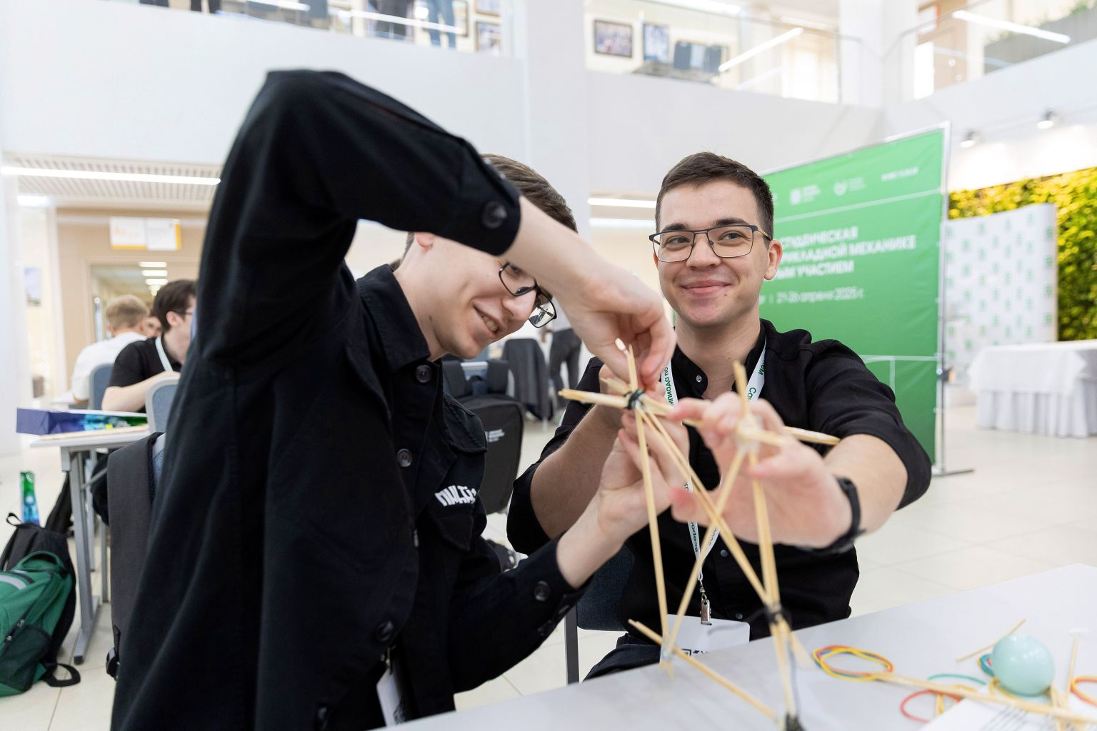 В рамках олимпиады команды соревновались в решении шести инженерных задач: три были посвящены сопротивлению материалов, а еще три — теоретической механике. Каждая задача требовала не только знаний теории, но и применения смекалки. Отдельным ярким событием стал инженерный конкурс «Создание катапульты», где участникам предстояло сконструировать действующую модель метательного устройства из подручных материалов. Командный дух, креативность и практические навыки студентов нашли здесь яркое воплощение, вызвав неподдельный интерес и одобрение жюри. Также в рамках олимпиады прошёл мастер-класс по основам работы в CAE-системах, где участники смогли познакомиться с современными инструментами компьютерного инжиниринга и возможностями численного моделирования механических процессов.