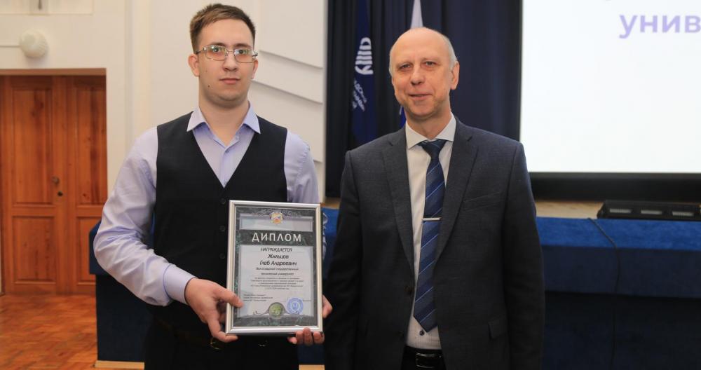 Торжественная церемония вручения диплома лауреата и памятного сертификата состоялась в стенах родного вуза победителя. Награду Глебу Жильцову вручил исполняющий обязанности ректора ВолгГТУ, член-корреспондент РАН Александр Валентинович Навроцкий.