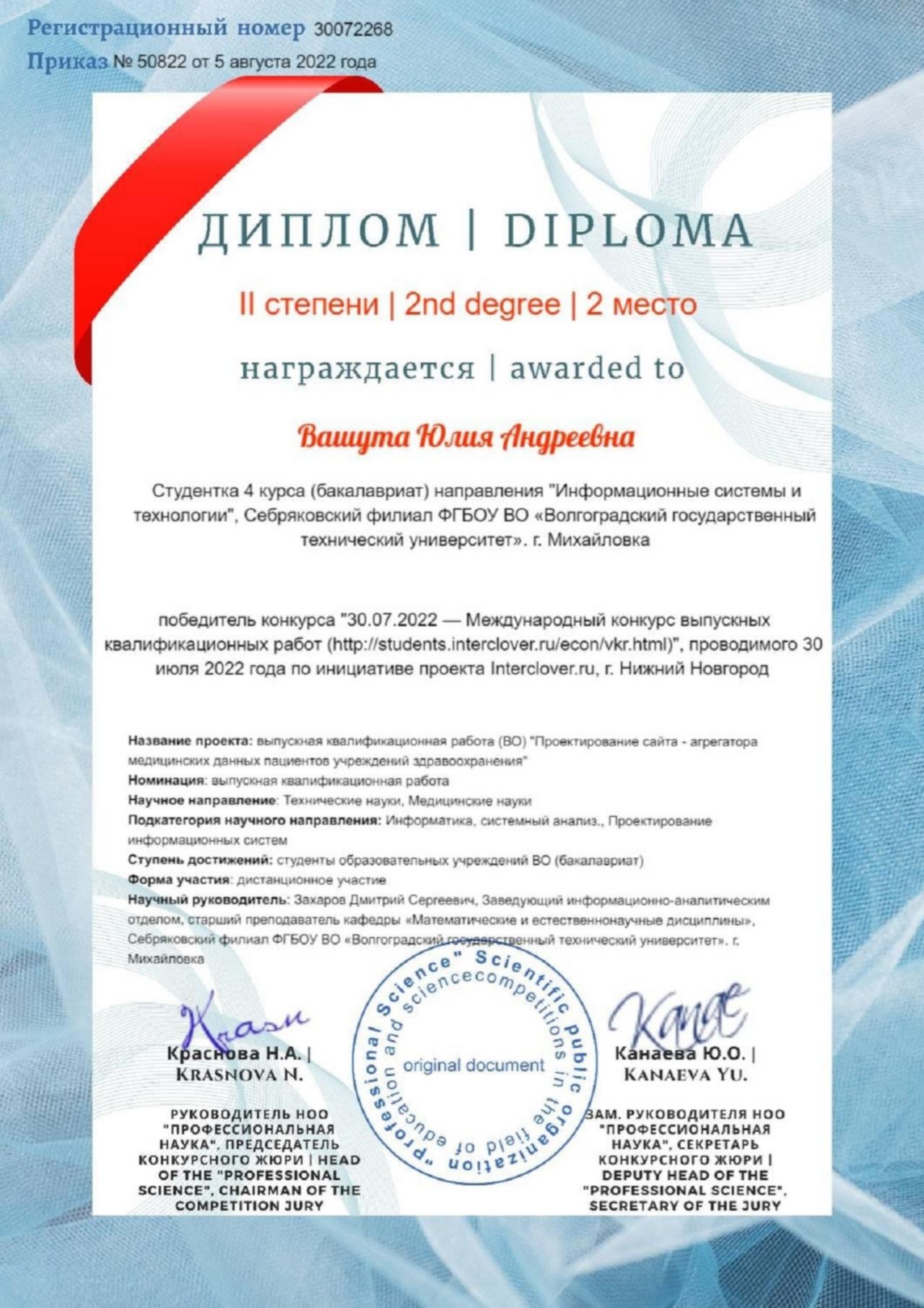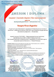 - в номинации «Международный конкурс ВКР» - диплом 2 степени;