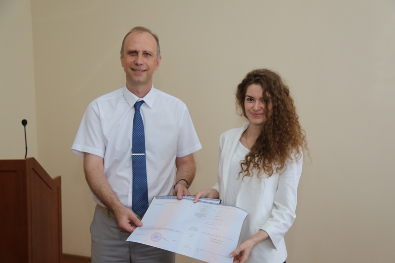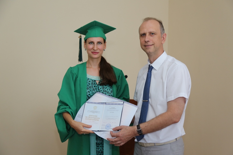 Заведующая отделом аспирантуры и докторантуры управления науки и инноваций вуза Алевтина Анатольевна Раюшкина обратила внимание выпускников на то, что именно данным дипломом об окончании аспирантуры, им присваивается квалификация «Преподавателя-исследователя», которая позволит им быть востребованными не только в России, но за границами нашей Родины.