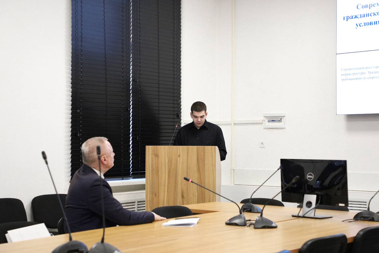 Открытие конференции и пленарное заседание прошли в диссертационном зале ИАиС. Модератором мероприятия выступил заведующий кафедрой технологий строительного производства О.В. Бурлаченко – именно он стоял у истоков этой научной конференции, которая в 2025 году проходит уже в седьмой раз. А открыл заседание заместитель директора института по учебной работе Е.А. Захаров. Евгений Александрович отметил, что интерес к конференции с каждым годом возрастает, и цифры говорят сами за себя. В этом году более 280 участников представляют разные вузы, научно-исследовательские центры и строительные организации Москвы, Санкт-Петербурга, Самары, Владикавказа, Луганска, Узбекистана. Такая широкая география подтверждает актуальность и постоянно возрастающий интерес к вопросам развития строительного комплекса.