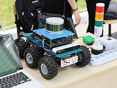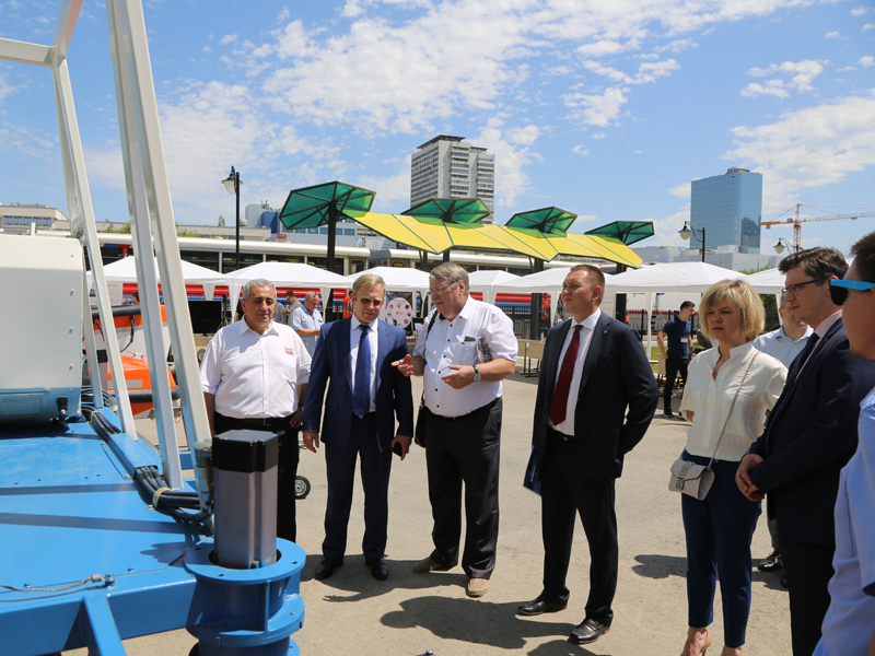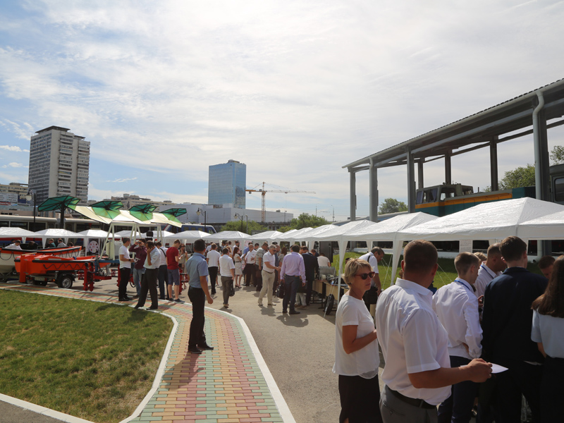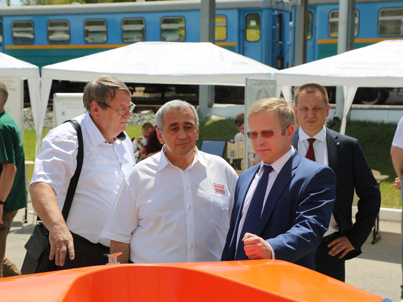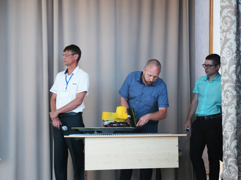 О применении автоматизированной аппарели для загрузки/выгрузки техники с железнодорожной платформы (макет этого устройства также был представлен на выставке) вместе с коллегой рассказал Михаил Вольфредович Ляшенко. Сегодня съезд тяговой техники с железнодорожной платформы – трудоемкий процесс, требующий больших человеческих ресурсов и времени, зачастую наносящий вред ЖД полотну. Ученые предлагают автоматизировать процесс (раскладывание и складывание аппарели), тем самым снизить время операции, исключить вероятность повреждения путей, уменьшить количество задействованного персонала и повысить безопасность работ.