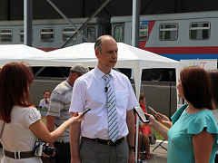 Проект «Автоматическая система оповещения работников РЖД о приближении поезда. Повышение безопасности движения на железнодорожных переездах» от опорного вуза представил Олег Олегович Тужиков. Рассказав о действующей технологии, он отметил основные ее проблемы и недостатки, а затем представил макетный образец нового устройства (с которым, кстати, все желающие могли ознакомиться во время выставки), которым предлагается оснастить ремонтные бригады, локомотивы и автоматизированные ЖД переезды.