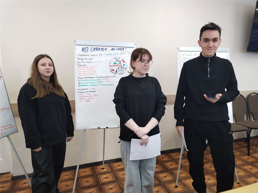 Первая команда представляла компанию «Креатив Лаб». Директор компании – Полина Яроцкая. Вторая команда представляла компанию ООО «Клеопатра». Директор компании – Вероника Лежнева. Третья команда Art Space, директором которой стал Рафаэль Сафаров. Задачей каждой команды стала разработка бизнес-идеи, состоящей в последовательном прохождении условных этапов создания фирмы.