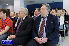 Евгений Вячеславович отметил, что наш вуз — участник федеральной программы «Приоритет 2030», направленной на обеспечение технологического превосходства страны: «Мы не просто обучаем — мы реализуем реальные стратегические технологические проекты, создающие технологические продукты будущего в области новых материалов и химии, металлургии и машиностроения, цифровых решений для промышленности, архитектуры и строительства, транспорта, пищевых технологий». Образовательная модель университета строится на уникальном балансе: фундаментальная подготовка (математика, химия, физика, механика, информатика, экономика), практическая работа с ведущими предприятиями региона (11 базовых кафедр, 10 специализированных лабораторий промышленных партнеров), участие в научных исследованиях (в т.ч. участие в российских и зарубежных конференциях), развитие технологического предпринимательства через стартапы (возможность создать собственный бизнес).