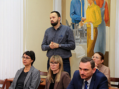 Провел мероприятие проректор по учебной работе И.Л. Гоник. Игорь Леонидович отметил, что работа по аккредитации идет уже несколько месяцев не только в головном вузе, но и в филиалах. После чего он представил экспертов - председателя экспертной комиссии, вице-президента ТПП ВО Максима Свидрова, директора Центра аккредитации и профессионального развития ТПП ВО Юлию Белякову, эксперта по вопросам аккредитации образовательных программ ТПП ВО Юрия Пилипюка, проректора по учебной работе и управлению качеством Волгоградского института бизнеса Лидию Шамрай-Курбатову, а также представителей предприятий-партнеров.