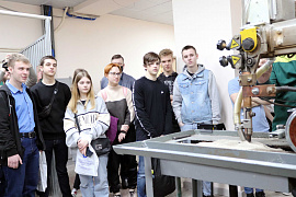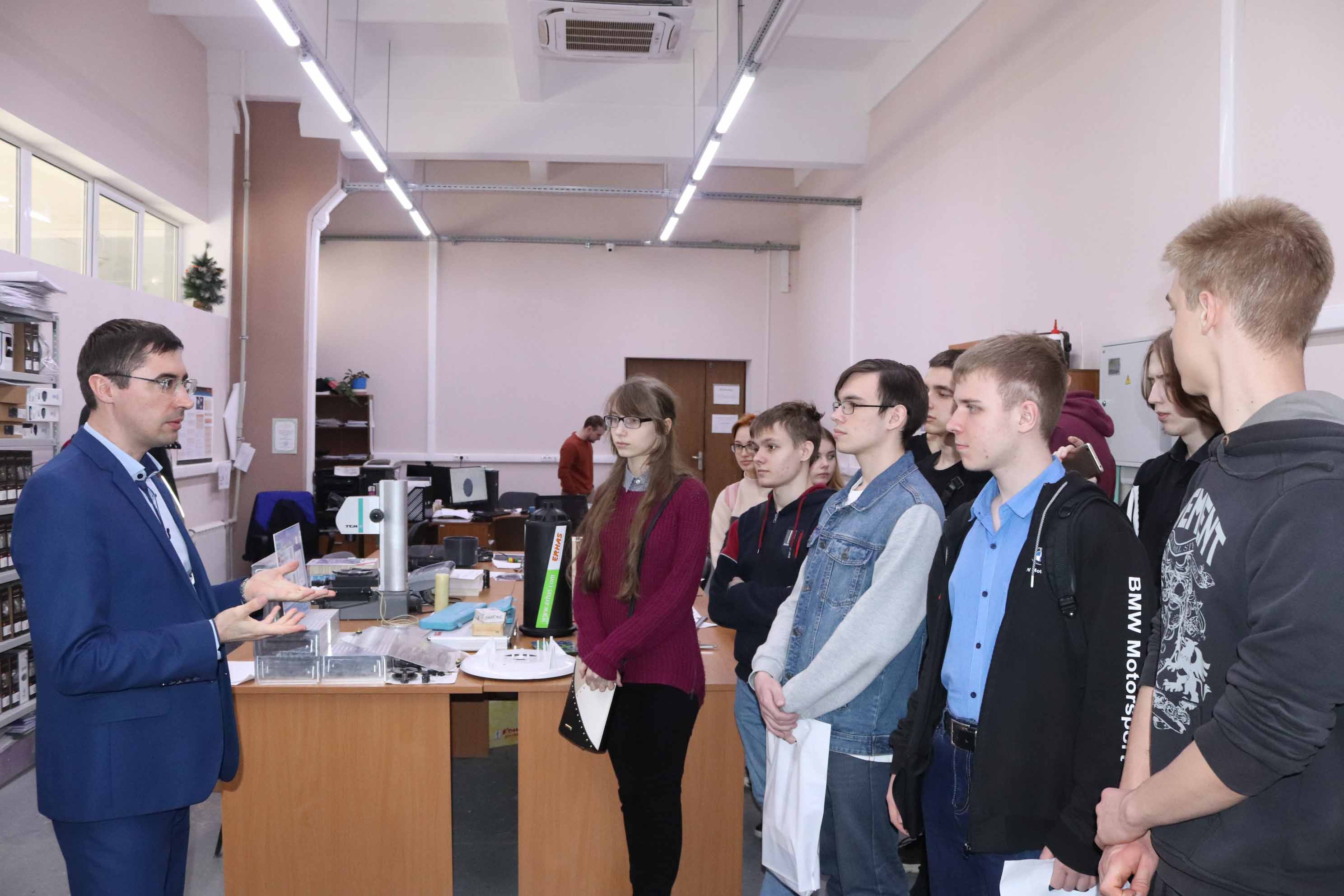Заведующий кафедрой «Автоматизация производственных процессов» А.М. Макаров продемонстрировал ребятам возможности центра прототипирования. В лаборатории мехатроники и робототехники старшеклассники смогли не только увидеть промышленный робот, но и собственноручно управлять им.