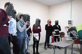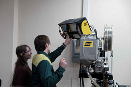 Далее по плану была лабораторная работа, которую провели профессор кафедры «Оборудование и технология сварочного производства» И.В. Зорин и ассистент С.К. Елсуков. Ребята не только познакомились с автоматической сваркой под флюсом и полуавтоматической сваркой в среде защитных газов, но и смогли получить настоящее сварное соединение.