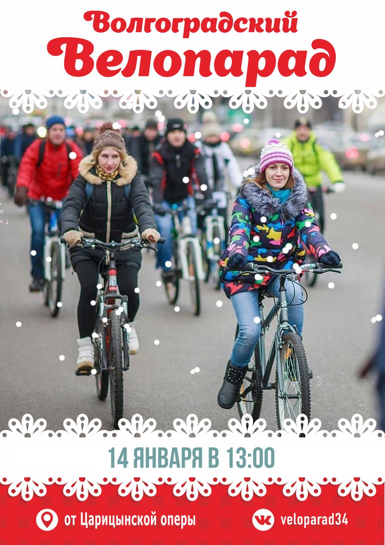 А в канун Старого Нового года активных и спортивных жителей города приглашают поддержать волгоградское велодвижение и принять участие во II Зимнем волгоградском велопараде за развитие велотранспортной инфраструктуры и безопасность на дорогах. Старт состоится 14 января 2018 года в 13.00 от Царицынской оперы.
