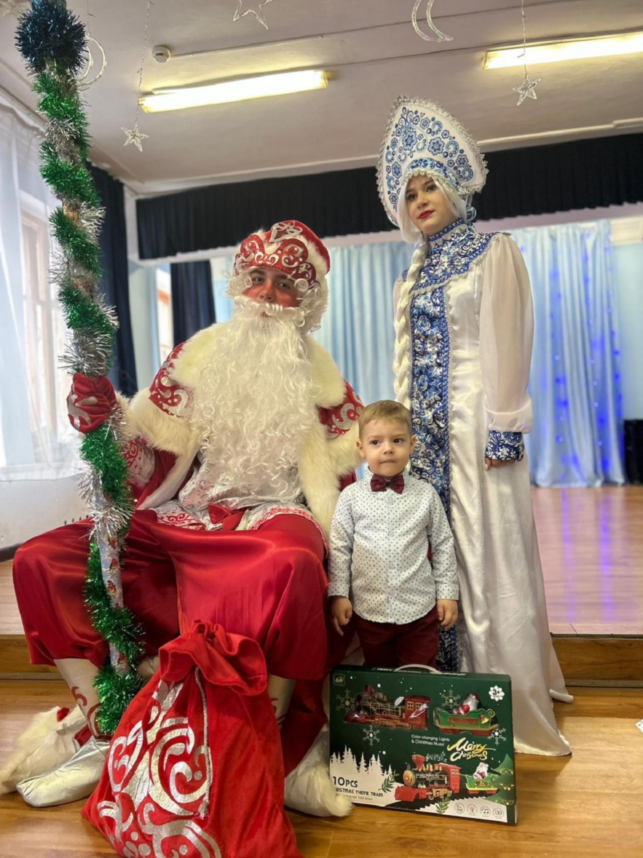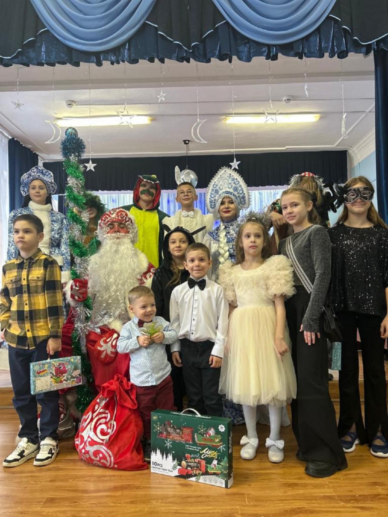 В начале представления юных зрителей поприветствовала Госпожа Сказка, которая оказалась невидимой для тех, кто перестал верить в чудеса. Но волшебная новогодняя пора открыла дорогу всем гостям в мир сказочных героев.