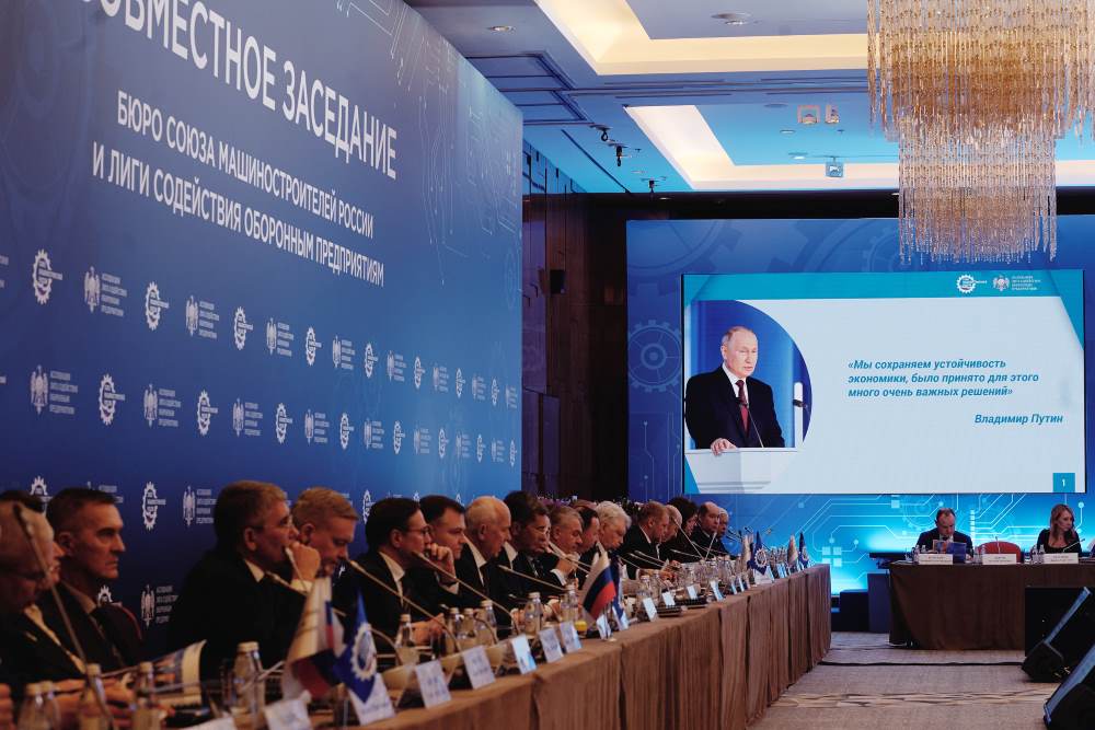 Открывая заседание, председатель Союза машиностроителей России, глава Госкорпорации Ростех Сергей Чемезов отметил, что прошедший год стал для промышленности периодом высокой концентрации усилий и ответственности. По его словам, в сложных внешнеэкономических условиях российская промышленность сохранила устойчивость, обеспечила выполнение задач в полном объёме и в установленные сроки, в том числе по выпуску продукции для нужд специальной военной операции.
