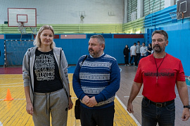 Старт соревновательной части дал конкурс «Повтори движения», который проводил уже знакомый нам студент первого курса Егор Бутко. Командам необходимо было запоминать и показывать упражнение по принципу игры в «Поломанный телефончик». Вторым этапом соревновательной части стали разнообразные эстафеты - от классических, с передачей мячей, до необычных, с забиванием гвоздей. Заключительным этапом стало перетягивание каната, которое проводил заместитель директора по учебной работе В.Е. Костин.