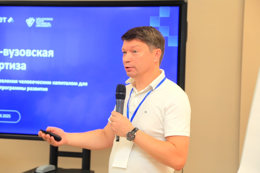 Антон Клименко, заместитель директора по опытно-конструкторской работе волгоградского филиала Института катализа им. Г.К. Борескова СО РАН отметил, что для коллектива Института подобные встречи – это один из способов общения. "Мы видим, как ВолгГТУ меняется, как вуз планомерно движется вперед. И это новые возможности для нашего партнерства, потому что любое подобное взаимодействие – это новые идеи, это новые темы для научных проектов, над которыми мы совместно работаем", - заметил Антон Сергеевич.