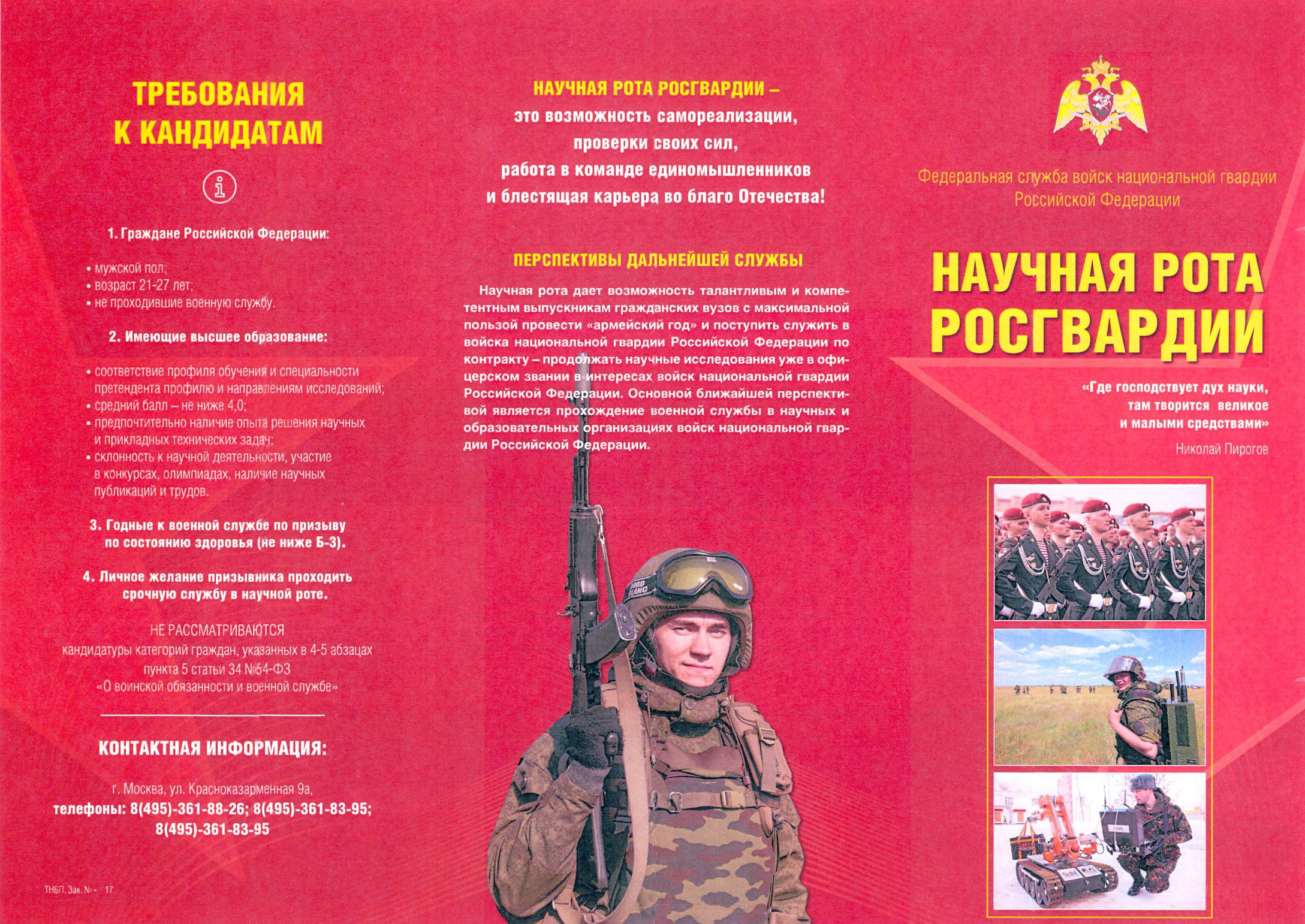 В 2017 году в составе Федеральной службы войск национальной гвардии Российской Федерации была сформирована учебно-научная рота. Для прохождения военной службы по призыву в данном подразделении отбираются наиболее подготовленные выпускники образовательных организаций высшего образования страны.