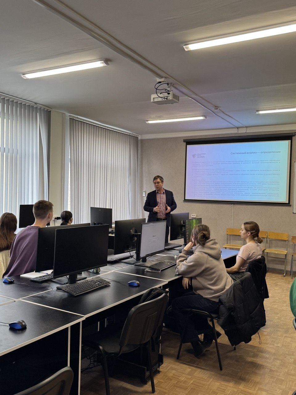 Практикум по системному анализу: профессор Дмитрий Скоробогатченко организовал работу в проектных группах, где студенты разрабатывали комплексные решения для оптимизации бизнес-процессов с использованием методов системного анализа.