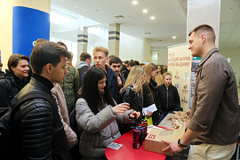 После официальной части студенты смогли напрямую пообщаться с работодателями на стендовой сессии, а также принять участие в интерактивных площадках: большом собеседовании от компании ГРАСС и экспресс-собеседовании от компании «Сады Придонья». За активность участники получали фишки для розыгрыша призов.