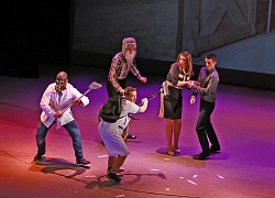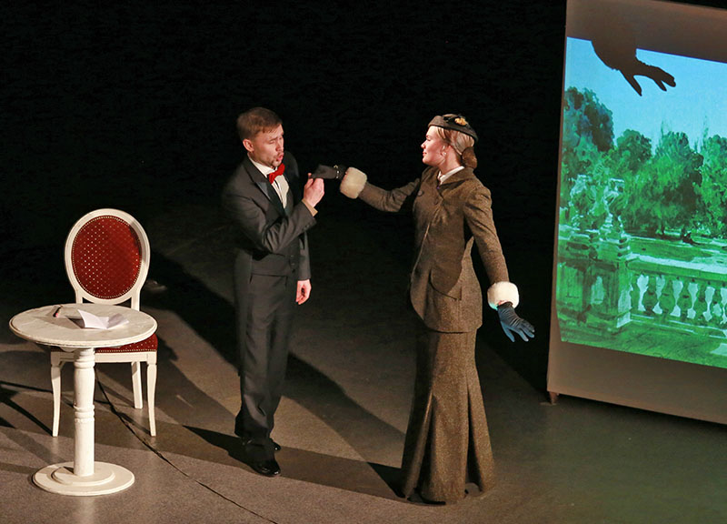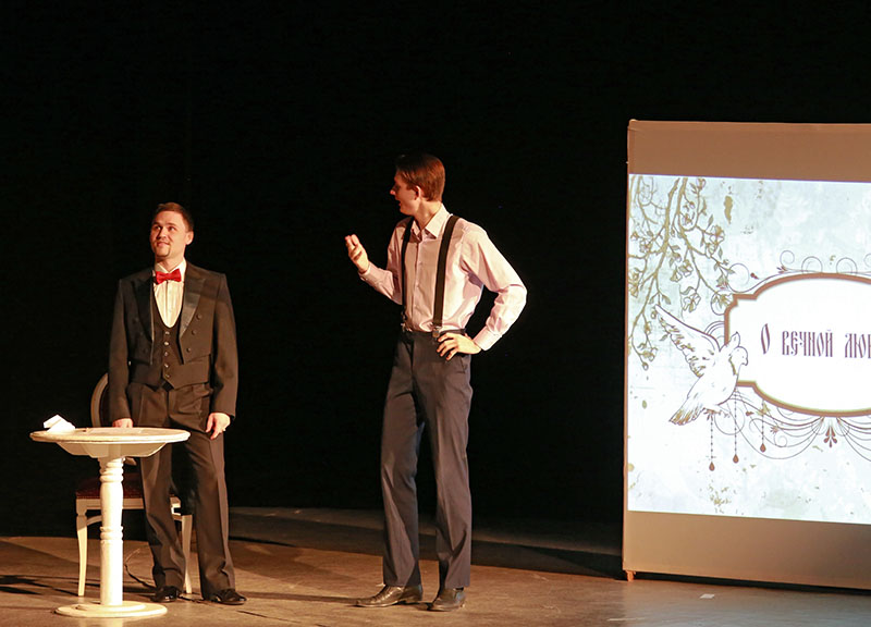Под пятым номером вчера выступал молодежный театр «Точка опоры» из ВолГУ. В особых представлениях этот коллектив не нуждается совершенно, как совершенно не нуждается в особых представлениях и ее руководитель – Елена Тополага. Но, знаете, как-то уже хочется сразу к делу, потому что то, что было показано вчера этими артистами – это высочайший уровень высочайшего мастерства. Это был самый настоящий театральный спектакль, который по ходу пьесы вызывал самые разные эмоции, но их объединяло одно – все эти эмоции были очень сильными. Спектакль о вечной любви, поставленный по мотивам сразу четырех рассказов двух блистательных русских писателей Надежды Тэффи и Антона Павловича Чехова. Истории любви. Самые разные. Сладостные. Горькие. Милые. Отчаянные. Она любит его, он любит другую, ее любит другой, которого не любит она…Истории рассказанные смешливо: «Я так тоскую, что не могу ничего есть!». Рассказанные со слезами на глазах: «Вы мной играете, я это вижу!». Спектакль о том, что «только раз бывает в жизни встреча, только раз судьбою рвется нить…» Об этом звучали прекрасные русские романсы в прекрасном исполнении, которые прекрасно дополняли все эти рассказанные, нет, не рассказанные, а выстраданные, вымученные, вырывающиеся вместе с криком из груди, мужские и женские истории. Была совершенно изумительная режиссерская находка совместить текст одного из рассказов далекого прошлого с сегодняшним днем, где герой робко предполагает о том, что в будущем, скорее всего, люди смогут придумать нечто такое, что позволит передавать фотографические карточки на дальние расстояния и эта фантазия более чем столетней давности была тут же воплощена в жизнь одним из актеров с помощью современного гаджета (ну никуда без них, даже в спектакле, поставленном по рассказам начала 20 века!). Очаровательные дамы и истинные джентльмены в настоящих костюмах той эпохи, воздух, который был просто пропитан чувственностью и соблазном, предательством и любовью, которая способна на любые безумства. Любовью, за которую можно отдать все, и всеобъемлющее желание бороться за свое счастье быть рядом с любимым человеком, и абсолютно горькое признание в финале: «Что толку от денег, когда нет счастья?!» Это было настоящее, о настоящем и по-настоящему! За все то время пока шел спектакль о вечной любви, зал слушал в благоговейной тишине: ни звука, ни шороха. И лишь когда закончилась эта вечная история, зал просто взорвался оглушительными аплодисментами и криками «Браво!»
