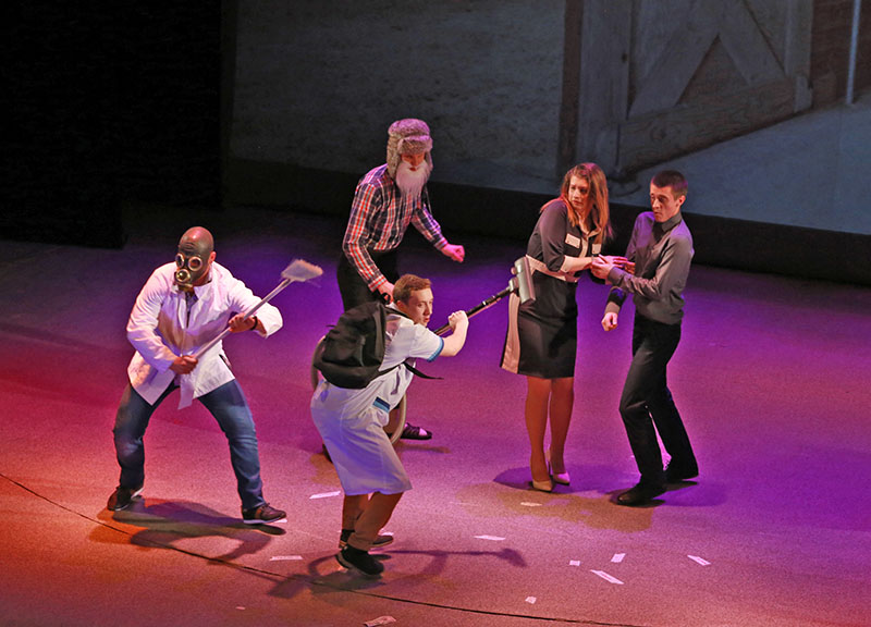 Вчера в Музыкальном театре Волгограда состоялся 2-й конкурсный день XXXIII Международного фестиваля СТЭМов «Земля – планет людей». Как сказали его постоянные ведущие – профессор ВолгГТУ, руководитель проекта «Конфитюр» Павел Васильевич Терелянский и выпускница техуниверситета, актриса СТЭМа «Атас» Юлия Голубева, театральный праздник студенческих выступлений этого года – это неотъемлемая часть предстоящего Всемирного фестиваля молодежи и студентов в Сочи в 2018 году. После представления команд, которым предстояло выйти вчера на сцену, и членов жюри, началось то, зачем приходят многочисленные зрители вот уже в 33-й раз – сами, собственно, выступления.