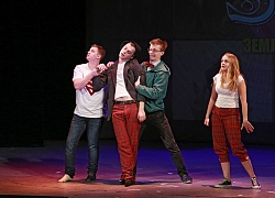 Первыми на сцену вышли молодые люди из Новомосковска, Тульской области. СТЭМ-шоу «Спасибо» представил на суд зрителей и жюри спектакль под названием «Мелочи жизни или Однажды в интернете». В общем-то, название говорит само за себя и поэтому то, о чем показывали и рассказывали ребята было очень даже знакомо каждому, кто был в этот день в зале. Это когда приходишь домой и первым делом включаешь компьютер, а уже потом все остальное. Вы не замечали, что сегодня практически у всех молодых людей глаза устремлены вниз – в транспорте ли, на отдыхе ли, в кафе ли – все сидят, уткнувшись в свои гаджеты. И главный вопрос – на что или кого они там все время смотрят? Ну, неужели на кошечек и собачек? Складывается такое впечатление, что когда они все-таки их, глаза в смысле, поднимают, они какое-то время приходят в себя от увиденного. Небо? Деревья? Машины? Кто все эти люди и что здесь происходит? Но потом опять все встает на свои места и опять туда, к своим, в свой виртуальный мир, в свои любимые гаджеты… В общем, делают вывод ребята – пусть интернет обеспечивает нас хобби, развлечениями, знакомствами и друзьями – лишь бы не заменял нам это все вышеперечисленное! Остается только сказать «спасибо» коллективу СТЭМ-шоу «Спасибо» за то, что они в своем выступлении подняли столь актуальную тему.