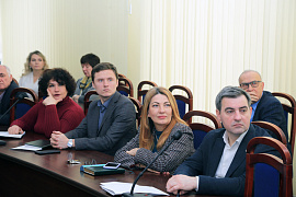 Далее перешли к работе по повестке дня, и слово для первого доклада было предоставлено проректору по учебной работе Александру Фетисову. Александр Викторович говорил о представлении работников университета к ведомственным наградам Минобрнауки России. Было отмечено, что количество работников, представляемых к награждению, регламентировано: не более одного человека от каждых 200 работающих. Говорилось о самих наградах – это почетное звание, медали, благодарности, нагрудные знаки и почетные грамоты. В случае наступления юбилейной или памятной даты организации количество работников, представляемых к награждению, может увеличиваться в два раза, именно так произойдет и в этом году с теми, кого будут награждать в ВолгГТУ. Квоты для вуза в 2025 году – 13 наград, 13 благодарностей, но поскольку в этом году коллектив будет в мае отмечать 95-летие, то квота будет увеличена в 2 раза. Докладчик перечислил политехников, которые представлены к ведомственным наградам Минобрнауки России. Так, к нагрудному знаку «Ветеран» Министерства науки и высшего образования Российской Федерации представлены Валерий Комочков, доцент кафедры АУ, Юрий Комаров, доцент кафедры АП, Александр Голованчиков, профессор кафедры ПАХПП. Медаль «За вклад в реализацию государственной политики в области образования и научно-технологического развития» - Александр Дахно, директор ВНТК. Медаль «За безупречный труд и отличие» - Неля Юмагулова, ведущий электроник, и Валентина Храмова, декан ФТПП. Знак «Молодой ученый» – Денис Небыков, доцент кафедры ТОНС. Также целая группа политехников представлена к почетным грамотам Минобрнауки, почетному званию «Почетный работник сферы образования РФ» и к благодарностям министерства науки и высшего образования РФ.