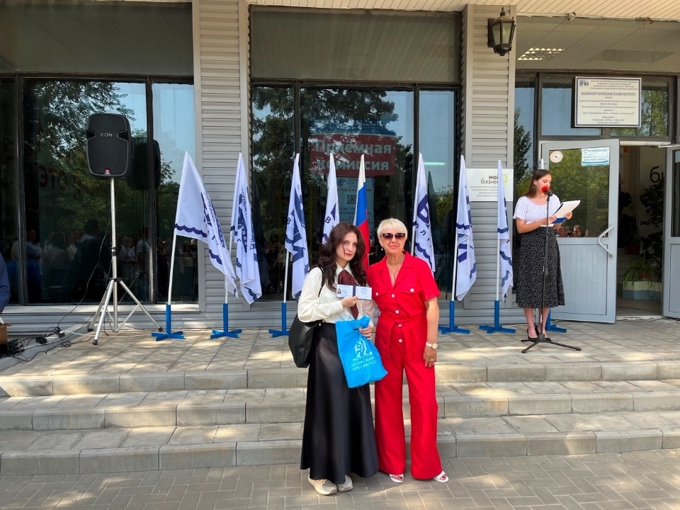 Первой новоиспеченных студентов поздравила директор ВПИ (филиала) ВолгГТУ доктор технических наук Марина Спиридонова. Марина Петровна напомнила, что Волжский политех - это одна большая семья, где каждый студент может реализовать свои возможности в учёбе, науке, спорте и творчестве. Кроме поздравлений директор ВПИ вручила студенческие билеты первокурсникам, которые поступили в вуз с высоким баллом ЕГЭ.