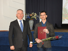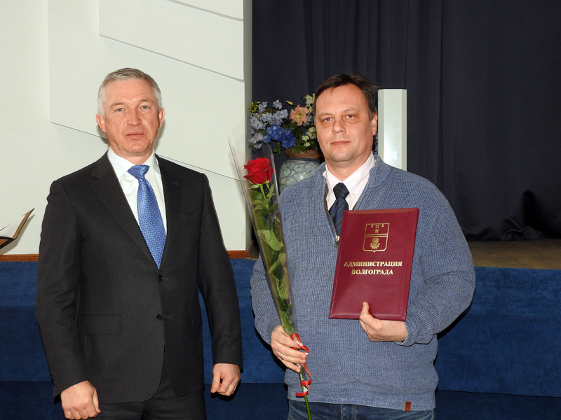 Далее председатель городской думы Владлен Владимирович Колесников (выпускник политеха) наградил почетными грамотами администрации Волгограда и городской думы целую группу политехников.
