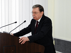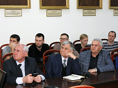 Затем в музее истории и науки Сергею Олеговичу подробно рассказали о том, как обстоят дела в вузе с публикационной активностью, патентной деятельностью, какие конкурсы ВолгГТУ выигрывал в последнее время, какие позиции занимает в международных и национальных рейтингах, что производит Волжский научно-технический комплекс, чем занимаются ученые-политехники. Естественно более подробно остановившись на разработках химиков, в том числе в области медицинской химии. Это направление развивается в нашем филиале – Волжском политехническом институте – и на кафедре «Органическая химия». После чего С.О. Бачурина провели по лабораториям и центрам коллективного пользования. А в зале заседаний ученого совета его уже ждали коллеги – сотрудники и студенты химфака, для которых он прочел лекцию «Современные тенденции в создании препаратов для лечения нейродегенеративных заболеваний (болезнь Альцгеймера, БАС и др.)». Но прежде Сергей Олегович поблагодарил руководство ВолгГТУ за радушный прием и подчеркнул, что его впечатлило увиденное – технический университет действительно один из лучших вузов страны. Переходя к теме выступления, он вкратце рассказал о том, что такое медицинская химия и как развивается это направление, пути создания лекарства (синтетического препарата), особенностях разработки препаратов для лечения ЦНС и др. Политехники не только с интересом слушали лектора, но и получили возможность задать интересующие их вопросы.