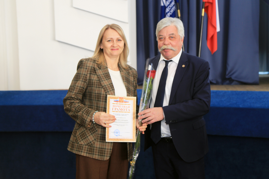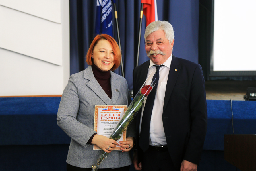 В знак признания заслуг Зина Османовна вручила Почетные грамоты и Благодарственные письма губернатора Волгоградской области и Волгоградской областной думы отличившимся сотрудникам ВолгГТУ.