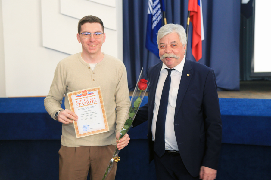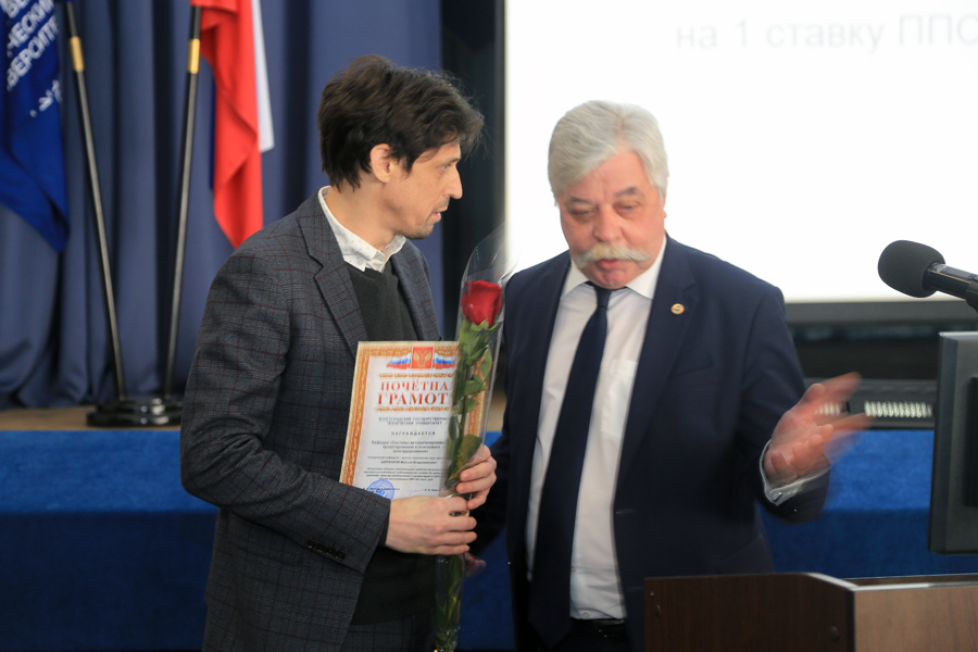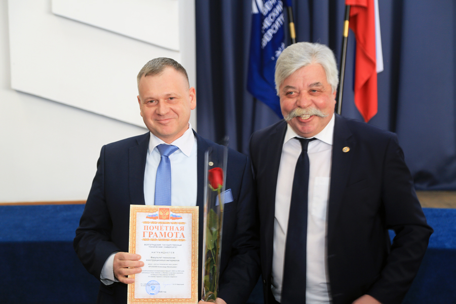 Прекрасным подарком для ученых вуза стал творческий номер «Туман» от вокального коллектива «Интрада». Затем Почетными грамотами ВолгГТУ за опубликование в 2025 году статей в изданиях, входящих в перечень ВАК, наградили аспирантов. Коллективы кафедр и многие сотрудники были удостоены Почетными грамотами ВолгГТУ за активную изобретательскую деятельность, за высокие объемы поступивших средств на выполнение научных исследований собственными силами по программам, грантам, заказам предприятий и организаций в 2025 году.