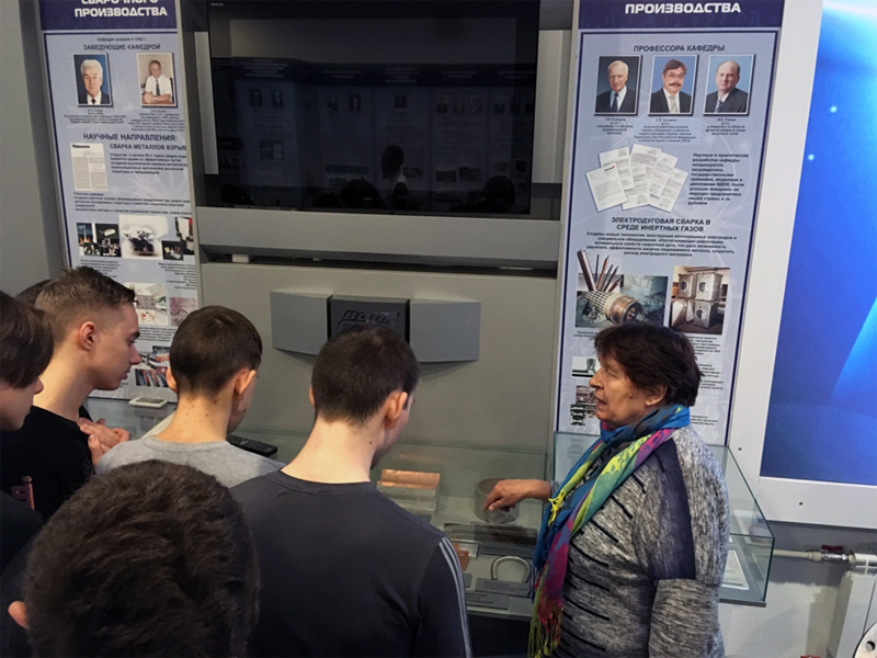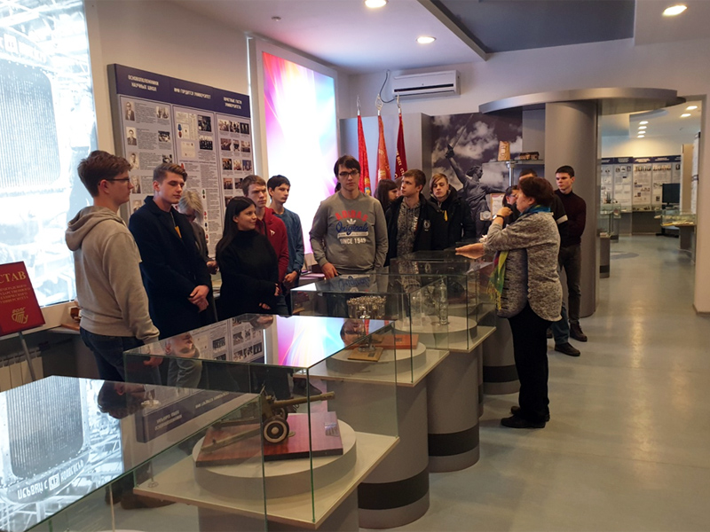 Заведующая музеем Светлана Петровна Мишта рассказала первокурсникам о развитии института в довоенные годы, о тяжелом времени войны, о студентах, которые имея бронь, ушли добровольцами защищать свою Родину. Политехники узнали о преподавателях разных специальностей, которые участвовали в научных разработках, связанных с военной техникой.