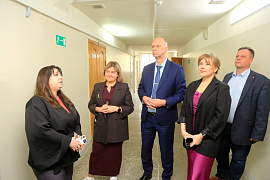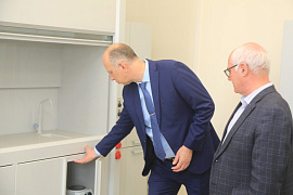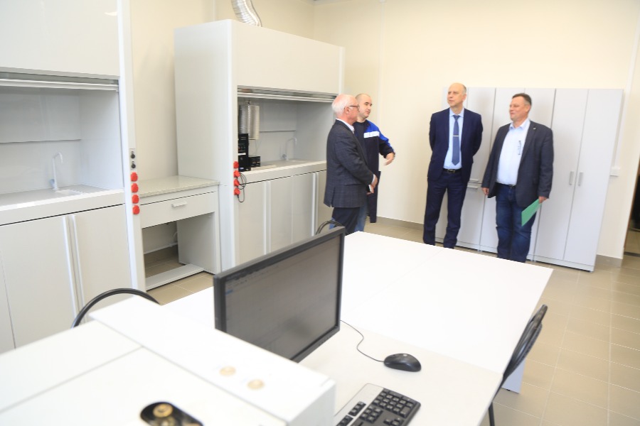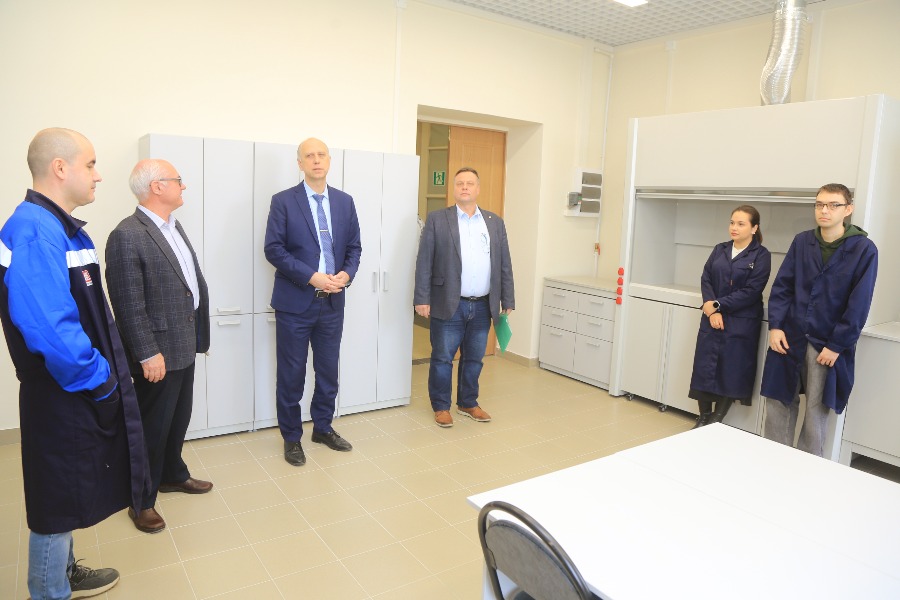 В лаборатории каталитических технологий кафедры ТОНС гостей ждали декан ХТФ Евгений Шишкин и сотрудники кафедры. «В настоящее время многие промышленные процессы, включая гидрирование, протекают при высоких давлениях и температурах. Разрабатываемые на кафедре ТОНС нанесенные металлические катализаторы позволяют эффективно осуществлять эти процессы при атмосферном давлении и умеренных температурах с высокими показателями удельной производительности и селективности. Новая лаборатория предназначена для разработки новых и совершенствования известных процессов органического и нефтехимического синтеза с участием студентов бакалавриата и магистрантов кафедры в рамках выполнения выпускных квалификационных работ», - отметил Евгений Вениаминович. Руководитель университета внимательно осмотрел оборудование и мебель, оценил свежий ремонт.