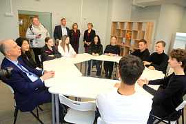 Следующим пунктом стал центр оценки и развития компетенций. Это площадка, где студенты сначала проходят диагностику своих универсальных компетенций («мягких навыков»), а затем работают над ними в рамках траектории самореализации. Директор центра Галина Мершиева отметила, что центр оценки и развития компетенций существует уже три года, за это время прошли оценку гибких компетенций более 3000 студентов, причем многие не единожды. Это позволяет молодым людям выявить сильные стороны и зоны для дальнейшего развития, что положительно сказывается на их личностном потенциале, а также формировании портфолио.