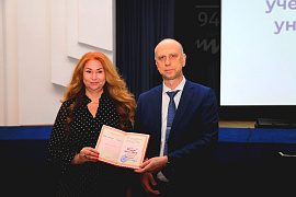 Далее Александр Валентинович вручил диплом кандидата технических наук Наталье Евстафьевой.