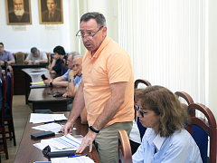 Если говорить пофакультетно, то стоит отметить, что по-прежнему в лидерах ФЭУ (КГ – 2181, КЦП – 86, согласий – 143), далее следует ФЭВТ (КГ – 2062, КЦП – 185, согласий – 200) и на третьем мете ФАСТиВ (КГ – 1683, КЦП – 156 и согласий – 131). Далее была представлена информация, которая сложилась на каждой кафедре. Говорилось сегодня, как обычно, и о том, как обстоят дела по приему на очно-заочную и заочную формы обучения, бюджет. Здесь в целом ситуация следующая: КЦП – 205, КГ – 1352, согласие – 252. И безусловный лидер здесь ФПИК, потому что там КГ – 536, КЦП – 79, согласий – 98. Шла речь сегодня и приеме в магистратуру (очная форма обучения, бюджет). Общие цифры: КЦП – 414, КГ – 1168, согласий – 417. И здесь лидер уже ФЭВТ (КГ – 235, КЦП – 80, согласие – 90). На втором месте ФАСТиВ (КГ – 165, КЦП – 50, согласий – 47). А на третьем месте – ФСиЖКХ (КГ – 160, КЦП – 48, согласий – 40). Е.В. Кузьмин рассказывал и о приеме заявлений/согласий от абитуриентов, имеющих среднее профессиональное образование. Так, на ФЭВТ уже КЦП – 185, заявлений – 62, согласий – 18. Озвучивалась статистика приема заявлений от абитуриентов, нуждающихся в местах в общежитиях. Проректор по учебной работе Александр Фетисов рассказывал о механизме предоставления этих мест. «Обязательно необходимо разъяснять молодым людям, у кого из них есть преимущества на получение места», – подчеркнул ректор ВолгГТУ Александр Навроцкий.