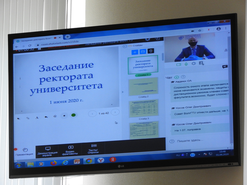 О конкурсных процедурах для профессорско-преподавательского состава в июне текущего года членам ректората доложил начальник управления кадров и социального развития Роман Михайлович Кувшинов. Было рассказано обо всех этапах, которые включают в себя дистанционный режим, очный этап (в большом помещении, с соблюдением социальной дистанции и всех санитарных норм) и заочный режим (с помощью телефонной связи, электронной почты и других средств коммуникации).