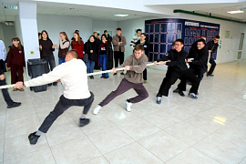 Не обошлось и без спортивных состязаний. Студенты с азартом сражались в турнире по дартсу, демонстрировали силу и командный дух в перетягивании каната, а также попробовали свои силы в жиме лёжа.