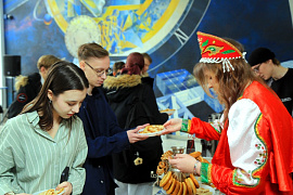 Традиционным местом проведения масленичных гуляний стал высотный корпус университета. Студенты разных факультетов проявили свои кулинарные таланты, испекли блины на любой вкус, предложив к ним широкий выбор джемов и, конечно же, согревающий горячий чай. Но главным ингредиентом праздника, безусловно, было отличное настроение, которое создавали веселая музыка и интересные конкурсы, организованные активистами управления молодежной политики и внеучебной деятельности.