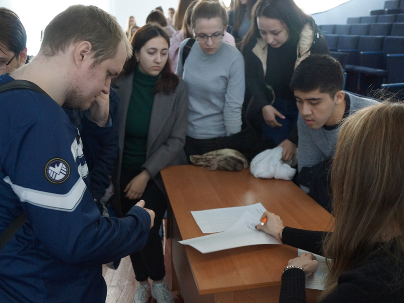 На этот раз мероприятие было организовано для студентов факультета технологии пищевых производств. Гостями стали представители ООО «Любимый город», ОАО «Сады Придонья», ООО «Альтернатива-Волга», а также АО «Производственная фирма «СКБ Контур».