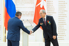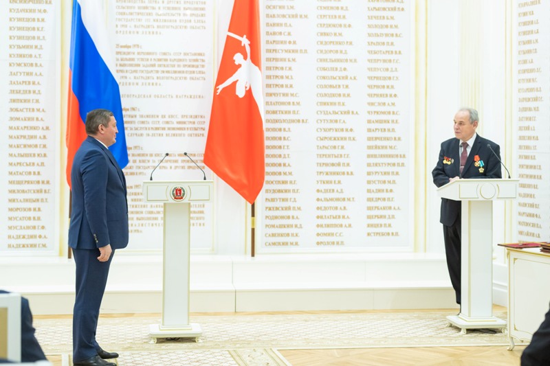 Высокие награды федерального и регионального уровней сегодня губернатор Андрей Бочаров вручил жителям Волгоградской области, посвятившим свою жизнь служению Отечества, добились высоких профессиональных достижений. Торжественная церемония состоялась в Зале Воинской и Трудовой Славы.